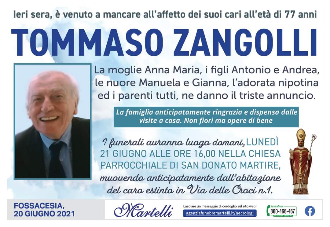 È scomparso, all'età di 77 anni, Tommaso Zangolli, storico parrucchiere di Fossacesia che aveva da poco festeggiato i 60° anni di attività .