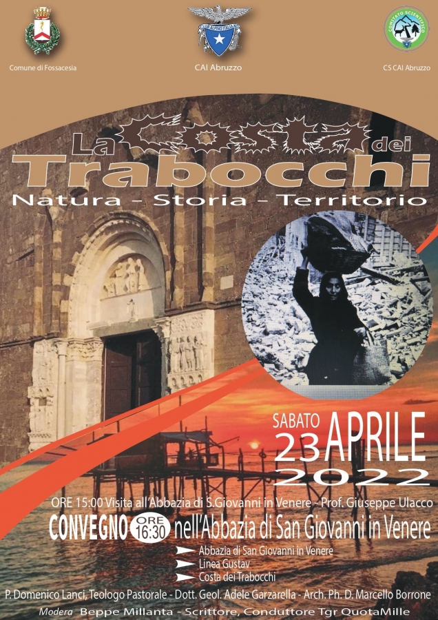 Domani, sabato 23 aprile, alle ore 15:00 si terrà presso l’abbazia di San Giovanni in Venere il convegno “La Costa dei Trabocchi, Natura, Storia e territorio” promosso dal Cai Abruzzo e patrocinato dal comune di Fossacesia.