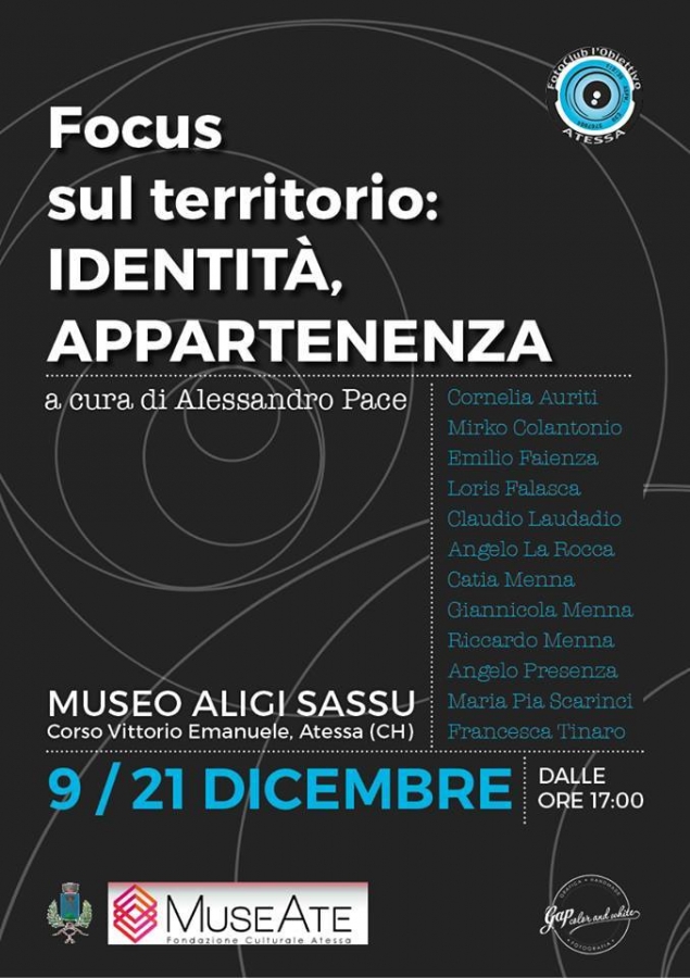 Proprio da questo contesto prende forma “Focus sul territorio: identità, appartenenza” la mostra collettiva nata dal corso di progettazione fotografica tenuto dal fotografo Alessandro Pace con la collaborazione e la partecipazione del Fotoclub “L’Obiettivo” di Atessa.