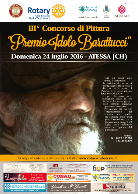 Domenica 24 luglio il concorso di pittura estemporanea, proposto per il terzo anno consecutivo dai Club Rotary Atessa Media Val Di Sangro e Rotaract in memoria dell'artista e a cui è dedicata l'esposizione temporanea “Idolo Barattucci” aperta fino al 24 agosto nel Polo Museale, percorso tra le opere realizzate dall'artista nella città di Atessa.