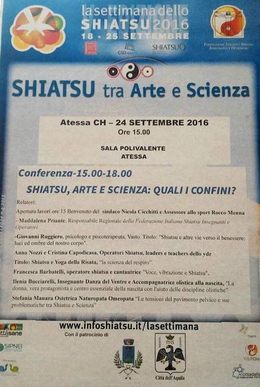 ATESSA – Shiatsu tra Arte e Scienza, questa la tematica affrontata nell’incontro promosso ad Atessa nell’ambito della Settimana nazionale dello Shiatsu che la FISieo (Federazione Italiana Shiatsu Insegnanti e operatori) ha organizzato anche quest’anno su tutto il territorio nazionale.