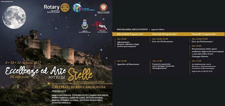 Dal 9 all’11 agosto torna la manifestazione “Eccellenze ed Arte sotto le Stelle” organizzata con il patrocinio del comune e della Pro Loco di Roccascalegna e dedicata all’arte contemporanea.