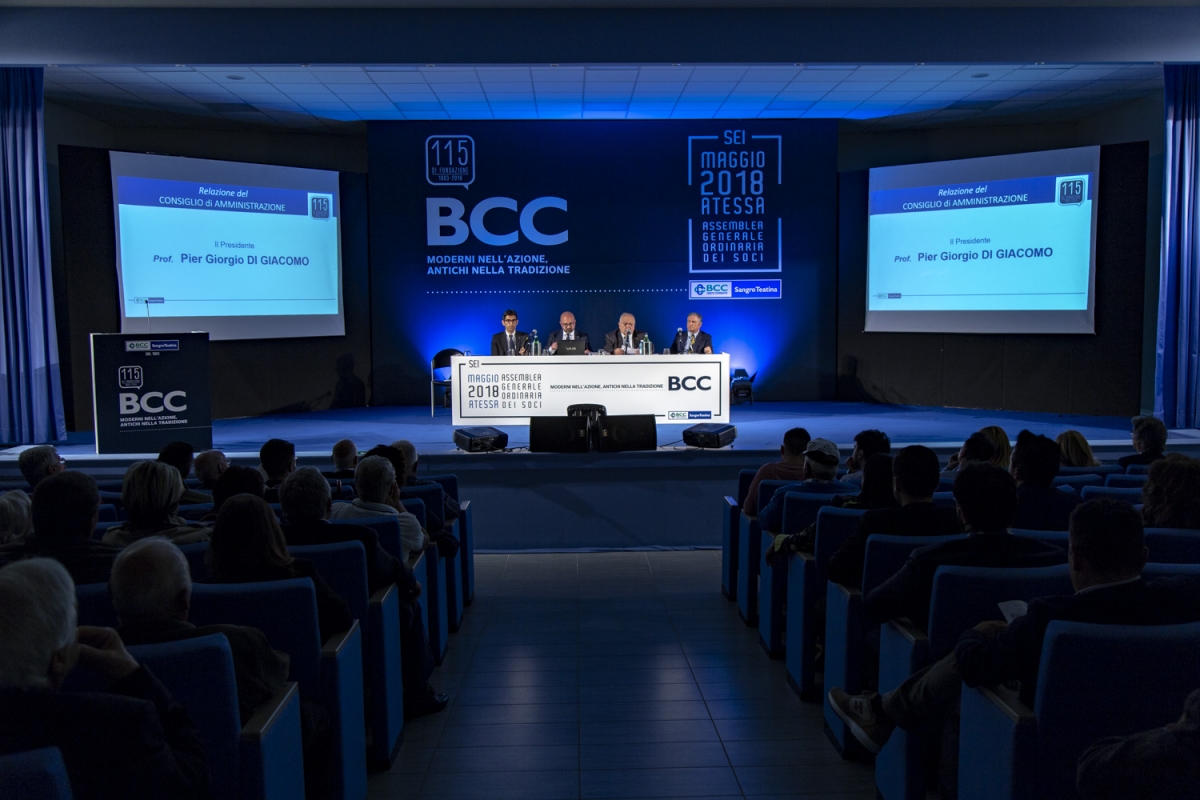 Un lavoro certificato dai numeri del bilancio consuntivo 2017, approvato dall’assemblea e presentato da Fabrizio Di Marco, direttore generale di Bcc Sangro Teatina insieme a Antonio Simone, responsabile area amministrativa: la più antica banca di credito cooperativo di Abruzzo e Molise, che il 3 maggio ha compiuto i 115 anni di età, può vantare il CET1 Ratio, che rappresenta il parametro di riferimento per la solidità, pari al 15,17 per cento, nettamente al di sopra dei limiti minimi fissati dalla Banca d’Italia (8,57 per cento) e della media espressa dal sistema bancario (12,5 per cento). Il patrimonio è di circa 30 milioni, il margine di intermediazione è cresciuto del 2,2 per cento, mentre in media per le Bcc c’è stato un calo del 2,5 per cento. Le spese del personale e quelle amministrative sono diminuite rispettivamente del 2,1 e del 2,5 per cento. Anche quest'anno, sacrificando il risultato d'esercizio, con la prudenza che contraddistingue la banca, la copertura delle partite anomale si è attestata al 50,11 per cento, mentre la media per le banche medio piccole è del 47,5 per cento. La raccolta totale ha raggiunto i 357 milioni, mentre gli impieghi si sono attestati a 218 milioni. In questo ultimo decennio di crisi, la raccolta complessiva è aumentata da 236 milioni a 357 milioni: un più 51,27 per cento (attestazione concreta della fiducia); gli impeghi da 148 milioni a 218 milioni, più 47,29 per cento, che significano sostegno concreto all’economia del territorio abruzzese e molisano di competenza. L’anno scorso, inoltre, sono stati 221 mila gli euro concessi ad associazioni, enti e iniziative di carattere culturale, sociale e ricreativo. L’utile si è attestato a 60 mila euro, mentre i soci sono 4.162.
