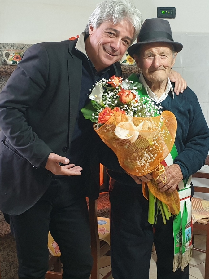 Il Comune ha fatto dono di un mazzo di fiori a Carmine che ha indossato la fascia da Sindaco a rappresentare l’importanza degli anziani nella società pizzoferratese. La centralità della funzione del saggio anziano Carmine di Cesare la rappresenta nel ruolo autorevole che svolge ancora all’interno della sua famiglia e della Comunità locale. Le sue riflessioni ed i suoi suggerimenti sono tenuti in grande considerazione.