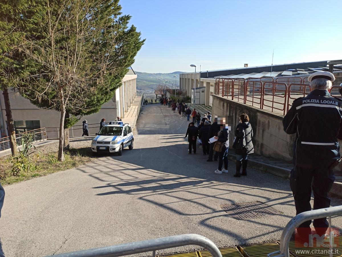 L’organizzazione seppur snella e veloce ha impedito il formarsi di una lunga fila di persone organizzata e ben distanziata.
