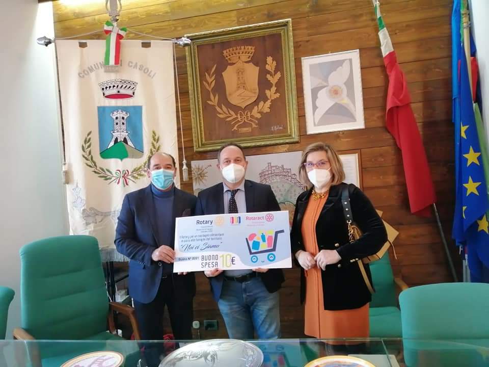 Nuova iniziativa del Rotary Club di Atessa Media Val di Sangro, che ha donato al Comune di Casoli dei buoni spesa, del valore complessivo di 500 euro, da utilizzare per sostenere le famiglie in difficoltà economiche a causa della pandemia.