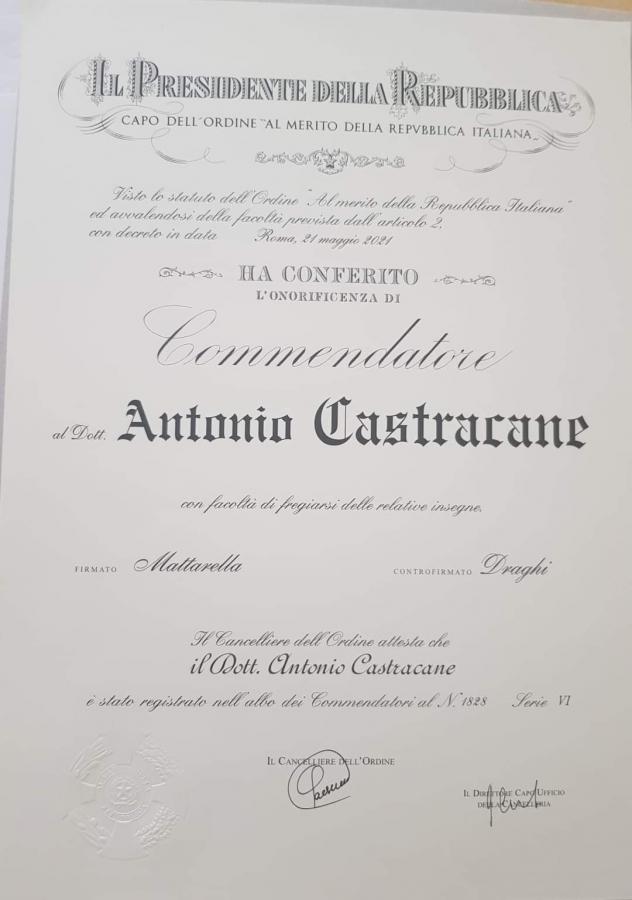È stata conferita al Dottor Antonio Castracane, residente a Villa Santa Maria, l’onorificenza di Commendatore della Repubblica Italiana per l’encomiabile servizio reso in favore delle popolazioni della Val di Sangro durante l’emergenza sanitaria dovuta alla pandemia.