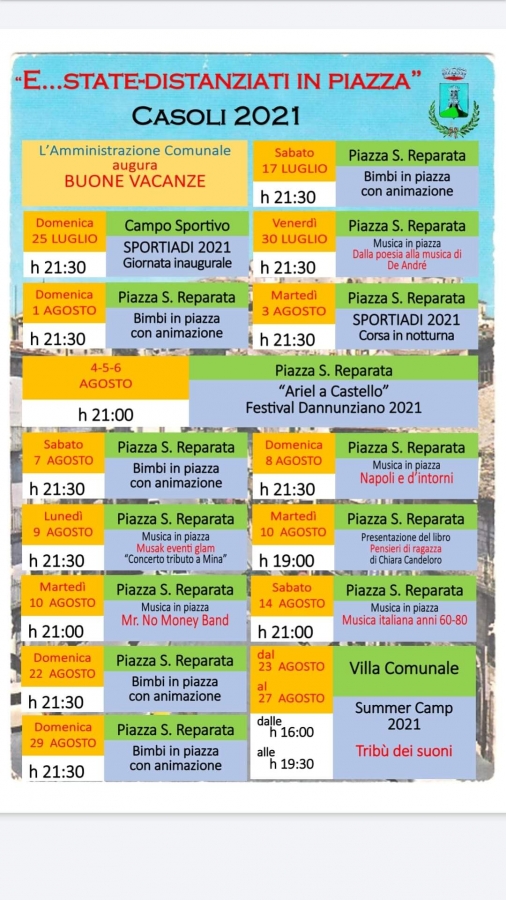 Il comune di Casoli ha pubblicato il calendario degli eventi previsti per questa estate.