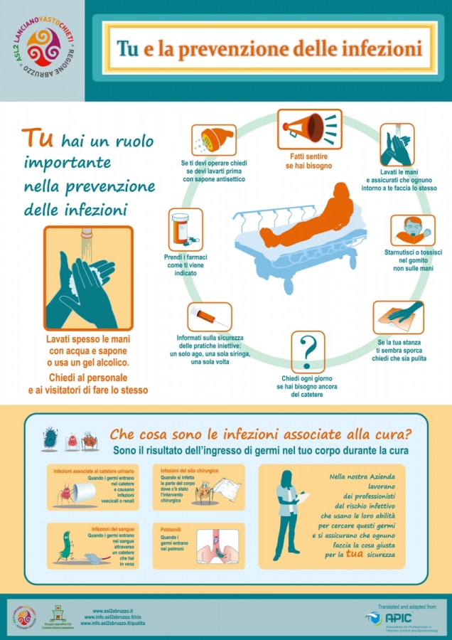 Le infezioni ospedaliere da germi multiresistenti sono uno dei principali nemici dei pazienti ricoverati e ogni anno in Italia sono responsabili di un numero impressionante di morti, tra 5.000 e 7.000, e di un "costo" che supera i 100 milioni di euro. Per combattere questi rischi la Asl Lanciano Vasto Chieti da anni ha avviato una serie di azioni che hanno portato a una riduzione del fenomeno nelle strutture sanitarie della provincia di Chieti: per quanto riguarda ad esempio le infezioni chirurgiche, ovvero quelle che coinvolgono la cute o il tessuto sottocutaneo e le strutture dell'area di incisione chirurgica, gli ultimi dati analizzati dal Gruppo operativo del Comitato infezioni ospedaliere della Asl indicano un calo dal 4,5%, prima del 2012, al 2,6% del 2015 su un campione di oltre mille interventi monitorati. Dati sostanzialmente analoghi a quelli nazionali.