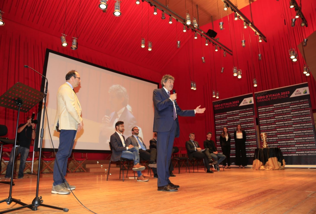 Sono intervenuti anche l’assessore regionale allo sport e neosenatore eletto, Guido Quintino Liris, l’assessore al turismo, Daniele D’Amario, i sindaci de L’Aquila e di Fossacesia, Pierluigi Biondi e Enrico Di Giuseppantonio, e i due ciclisti professionisti abruzzesi Giulio Ciccone e Dario Cataldo.