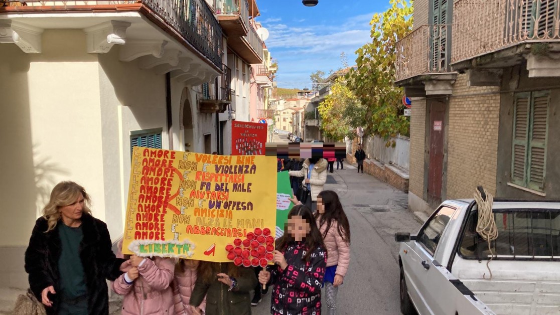 L’evento ha preso il via con il corteo, che una volta partito dal cortile della scuola primari di Paglieta capoluogo, ha raggiunto Piazza Guglielmo Marconi dove è installata la “Panchina rossa”, un simbolo della lunga lista delle donne uccise dai loro aguzzini.