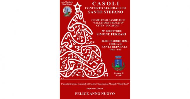 Si terrà questa sera, alle ore 18:30, presso Chiesa di Santa Reparata a Casoli il tradizionale concerto augurale di Santo Stefano.