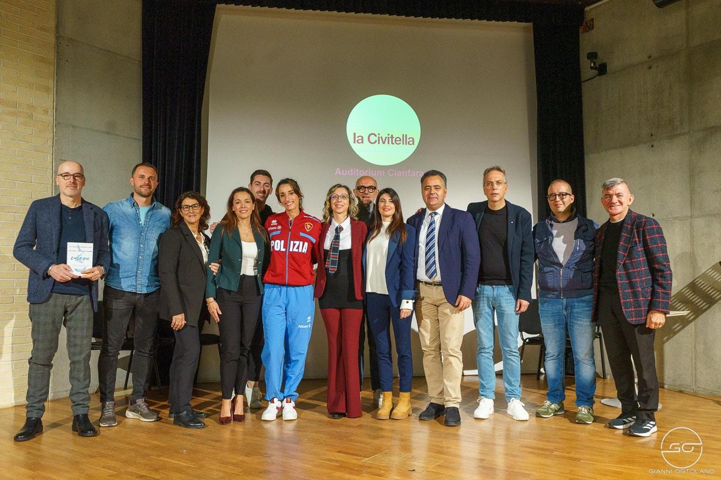 Una mattinata all’insegna dello sport sano e dei suoi valori quello raccontato dalla pluricampionessa olimpica di scherma Elisa Di Francisca all’Auditorium Cianfarani all’interno del Museo La Civitella di Chieti, insieme alla presentazione del libro “Emozioni” (Poderosa Edizioni) di Luigi Milozzi e Francesca Di Giuseppe a cura del Centro Studi Sport&Valori, presieduto da Giampiero Davide, e di cui l’olimpionica ha firmato la prefazione insieme alla è pluricampionessa di pattinaggio a rotelle Debora Sbei.