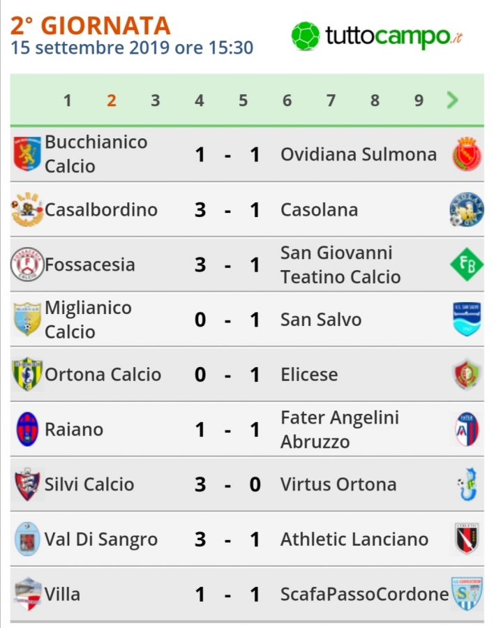 Quattro squadre in testa dopo la seconda giornata del campionato di promozione girone b. Tra queste il Fossacesia che si impone in casa 3-1 contro il San Giovanni Teatino. Le altre squadre a punteggio pieno sono il Silvi, il Casalbordino e l'Elicese. Vittoria casalinga anche per la Val di Sangro per 3-1 contro l'Athletic Lanciano. Sconfitta esterna invece con analogo risultato per la Casolana sul difficile campo del Casalbordino.