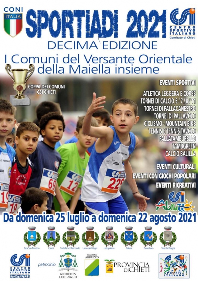 Prendono oggi il via le Sportiadi 2021 promossa dai comuni del versante orientale della Maiellla assieme al Comitato Provinciale di Chieti del Centro sportivo Italiano.