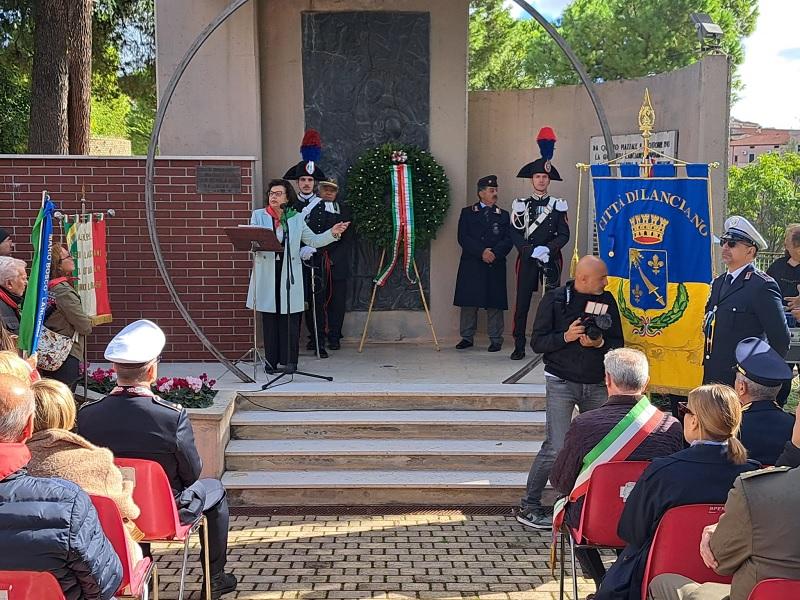 “Nessuno muore del tutto finché ne sia conservato il ricordo”: con questa citazione di Jorge Luis Borges la Presidente dell’A.N.P.I. sezione di Lanciano, Maria Saveria Borrelli, ha aperto il suo discorso, dopo la deposizione della corona al Monumento in piazza dei Martiri lancianesi, stamani, lunedì 6 ottobre. Un discorso limpido, che ha riportato in vita, attraverso un racconto vivido, avvincente e doloroso, coloro che, ottantadue anni fa, a Lanciano, diedero la vita per la libertà, contro l’oppressione nazifascista: i partigiani Vincenzo Bianco, Giovanni Calabrò, Giuseppe Castiglione, Achille Cuonzo, Remo Falcone, Adamo Giangiulio, Trentino La Barba, Giuseppe Marsilio, Guido Rosato, Raffaele Stella, Nicolino Trozzi, Americo Di Menno Di Bucchianico, Carlo Schoneim, Mons. Pietro Tesauri; e le vittime per rappresaglia: Maria Auricchio, Gilberto Cicchitti, Luigi Cioppi, Giovanni De Chellis, Gaetano Di Campli, Giuseppe Iacobitti, Dora Manzitti, Giuseppe Orfeo, Francesco Paolo Piccirilli, Leopoldo Salerno, Pierino Sammaciccia, Camillo Trozzi. Nomi, volti e storie che Lanciano ogni anno onora e non dimentica, in una cerimonia solenne e sentita, vibrante di emozioni autentiche che accomunano ogni fascia di età, ogni generazione. Erano, infatti, presenti a questa ottantaduesima commemorazione, le Autorità civili e militari, le Associazioni Combattentistiche e d’Arma, l’A.N.P.I. di Lanciano, ma anche diverse rappresentanze di studenti della scuola primaria “Eroi Ottobrini”, della scuola media “Giuseppe Mazzini” e del Canadian College. Gli studenti degli Eroi Ottobrini si sono esibiti in un flash mob in piazza Plebiscito, mentre i ragazzi della III E della Mazzini hanno letto, presso il Monumento ai Martiri, alcuni testi da loro prodotti sugli eroi lancianesi, recando con loro anche dei disegni.