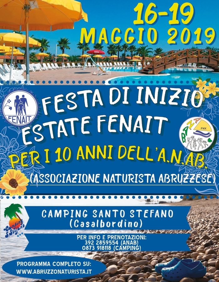 E’ questo lo spirito con il quale l’A.N.AB., l’Associazione Naturista Abruzzese, sta organizzando, dal 16 al 19 maggio in prossimità dell’inizio della stagione estiva, una vera e propria festa presso il Camping Santo Stefano di Casalbordino, nelle vicinanze della Spiaggia Naturista di Lido le Morge a Torino di Sangro.